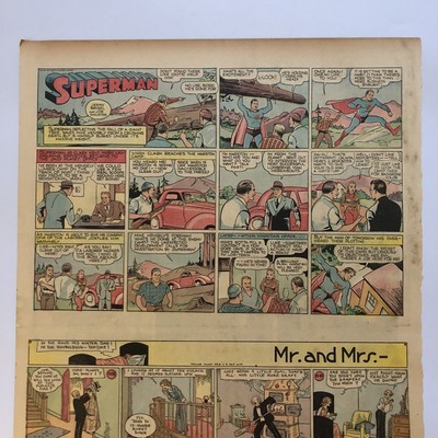 Superman was a daily newspaper comic strip which began on january 16 1939 and a separate sunday strip was added on november 5 1939. In the spring of 1939 superman 1 hit the stands the first comic book ever devoted to a single character. At its peak the strip featuring superman was in over 300 daily newspapers and 90 sunday papers with a readership of over 20 million.